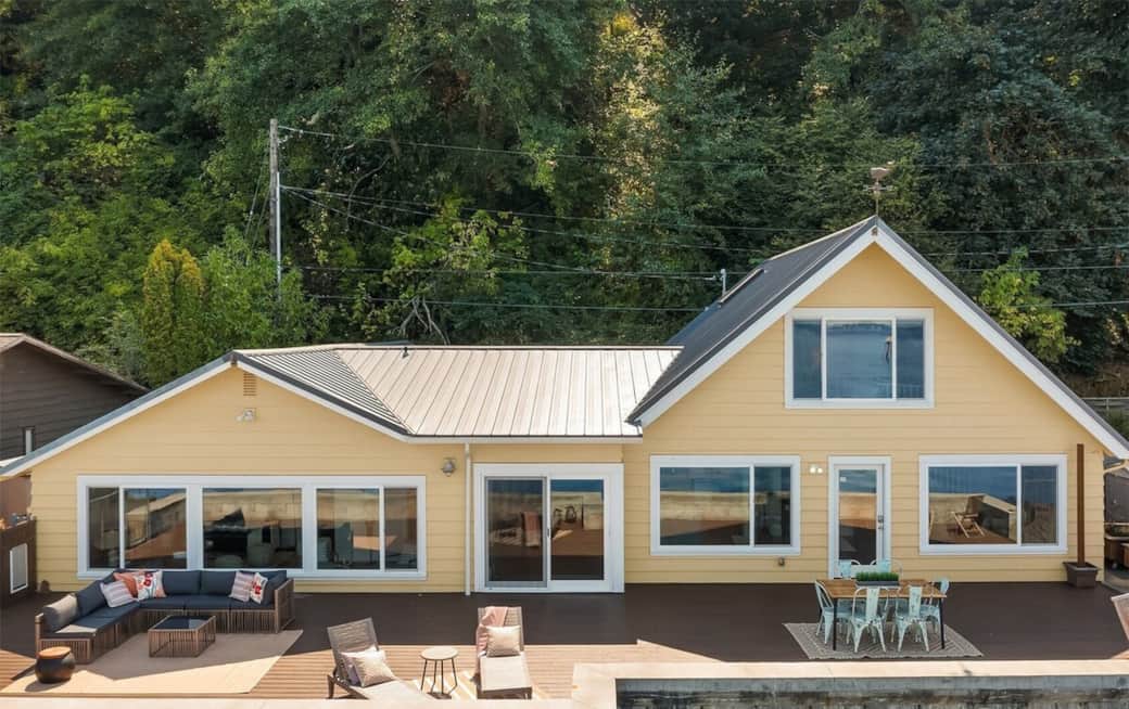 This waterfront getaway has outdoor space for days with the whole waterfront side of the house covered in windows enjoy time watching the world go by. From the dining room or the upstairs loft or the living room or the kitchen or even outside on the massive deck... nearly every room in the home you can watch the ferry boats go by, orcas, eagles, cormorants and all kinds of wildlife.